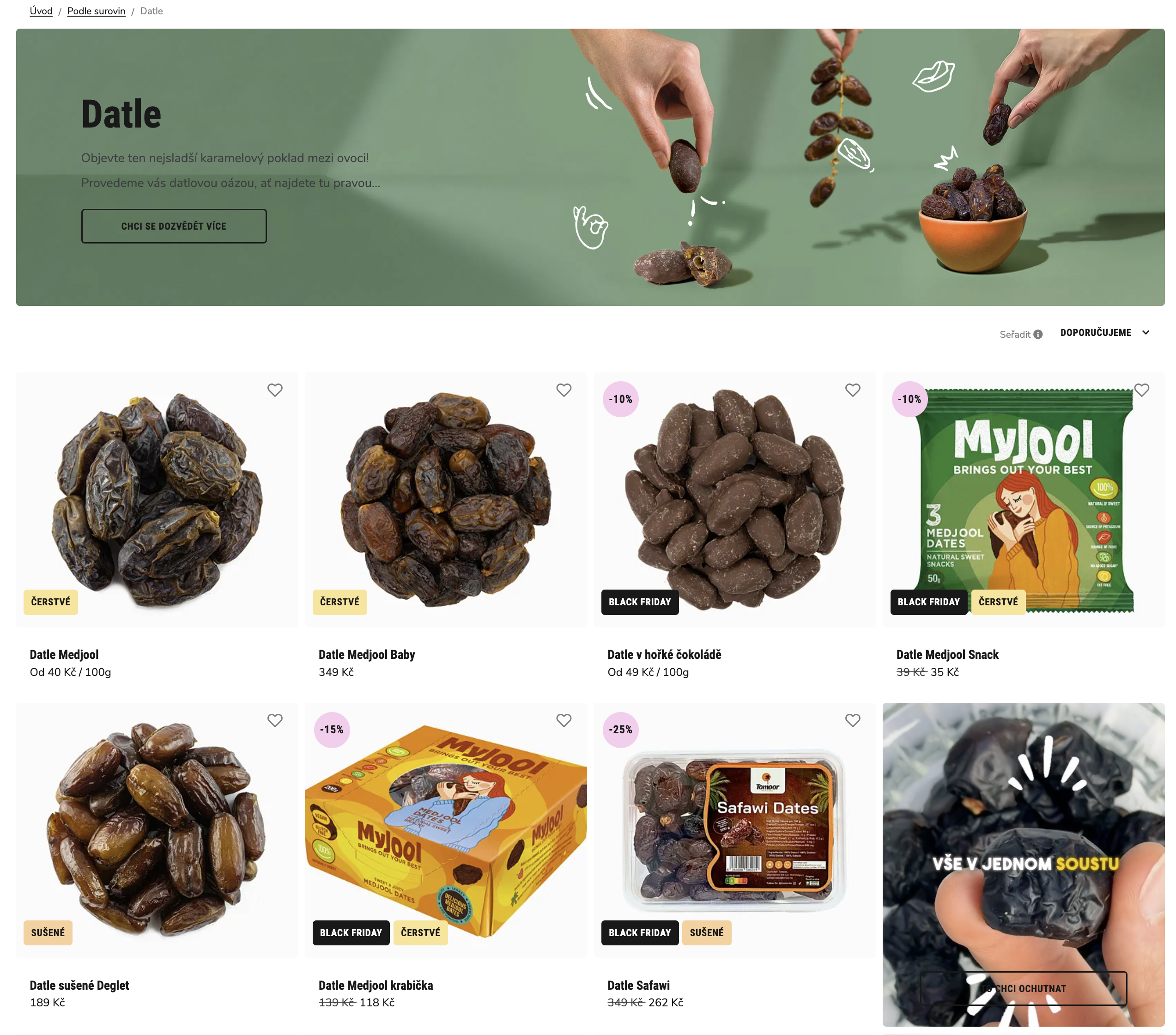 - V sekcích (katalogu produktů) místo dlaždice produktu
