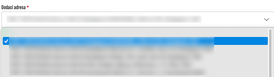 Pokud má uživatel nastavené adresy, automaticky se mu nabídne výběr ze seznamu a pro pokračování si z něj musí adresu dodání zvolit. Pokud má uživatel nastavenou pouze jednu adresu, je vybraná automaticky. Podobné fungování je dostupné i na stránce předobjednávky.
