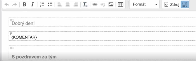 . Tento symbol určuje místo, kam se bude vkládat unikátní obsah každé jednotlivé zprávy (např. text potvrzení objednávky). Bez něj by se odesílaly pouze prázdné šablony.