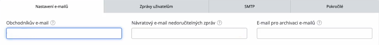 Pro správnou funkčnost je klíčové nastavit si zde primární Email obchodníka a případně také email pro archivaci a pro zpracování nedoručitelných zpráv.