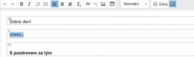 💡Klíčové nastavení symbolu [EMAIL] V hlavní šabloně emailů je nezbytné nastavit zástupný symbol [EMAIL]
