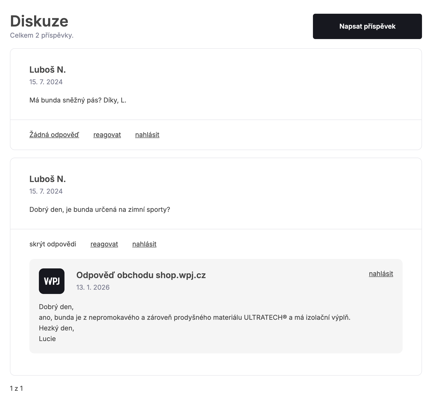 Příspěvky se v diskuzi objeví až poté, co je administrátor e-shopu schválí.