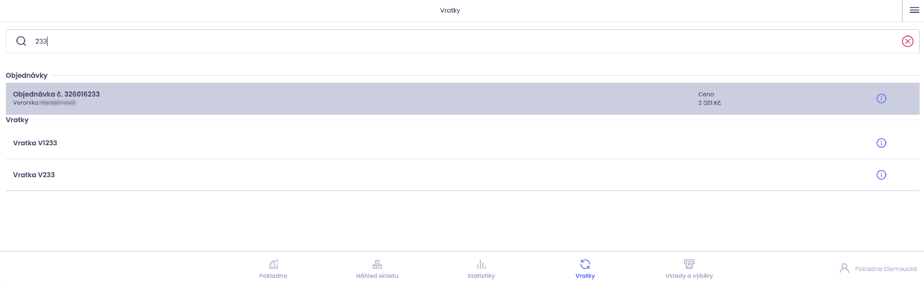 Nově je pro vrácení zboží v pokladně k dispozici samostatný modul. Po aktivaci přibude v pokladně nová záložka Vratky, ve které lze vrácení vyřídit přímo bez přecházení jinam.